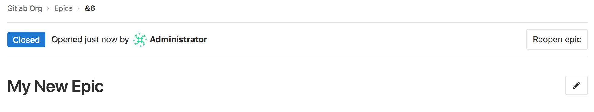 Selecting Reopen epic.