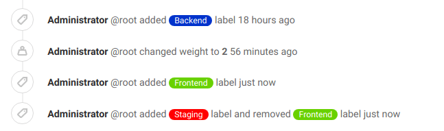 This process can be seen clearly when visiting an issue. With every move to another list, the label changes and a system note is recorded.
