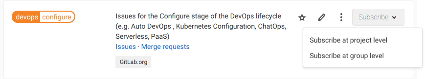 If you are subscribing to a group label from within a project, you can select to subscribe to label notifications for the project only, or the whole group.