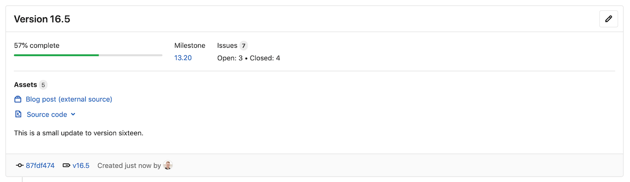 Note that the feature is built on top of Git tags, so virtually no extra data is needed besides to create the release itself. Additional assets and the release evidence that is automatically generated consume storage.